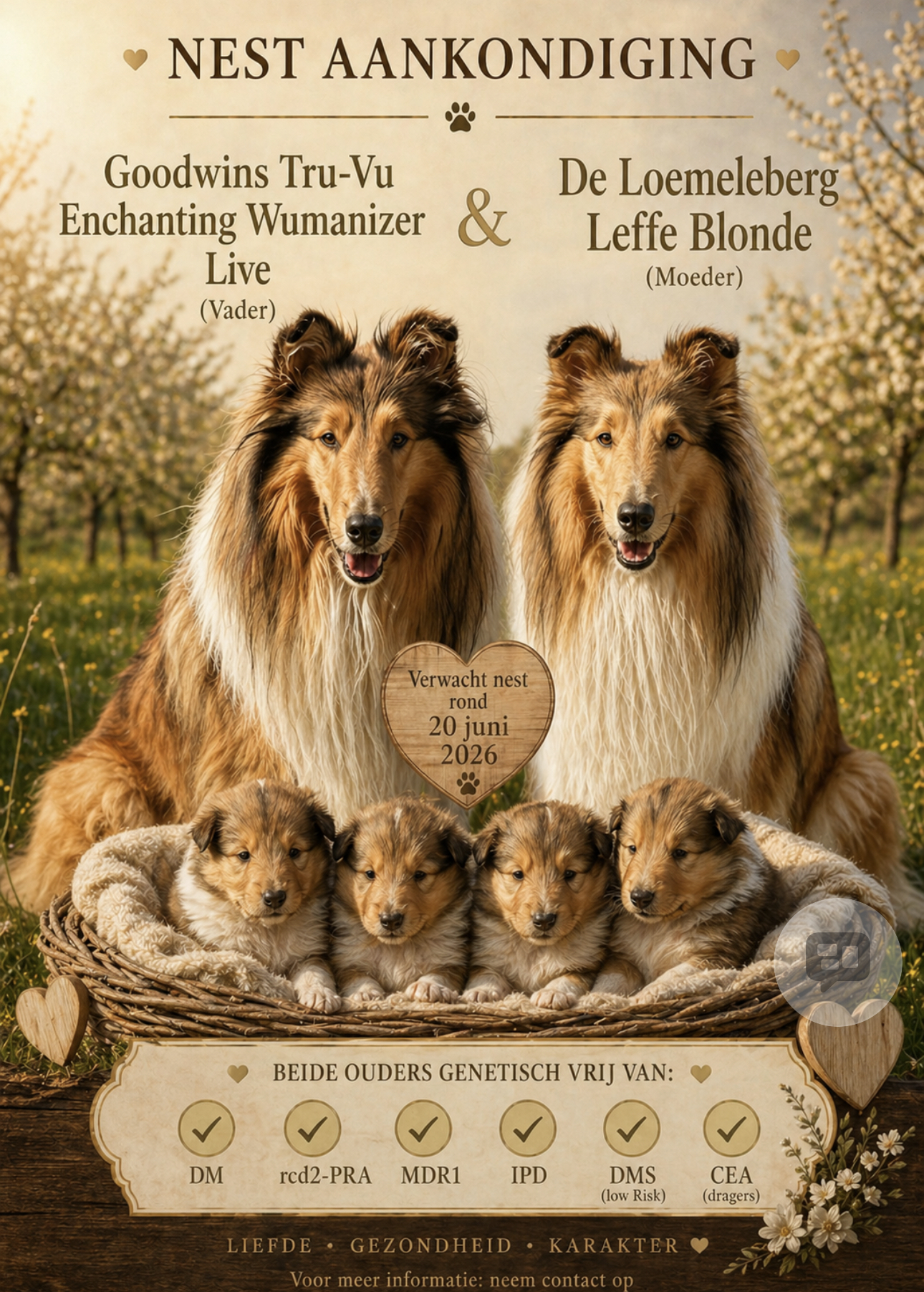 Wij hopen eind juni 2026 weer een nestje puppies te mogen begroeten.